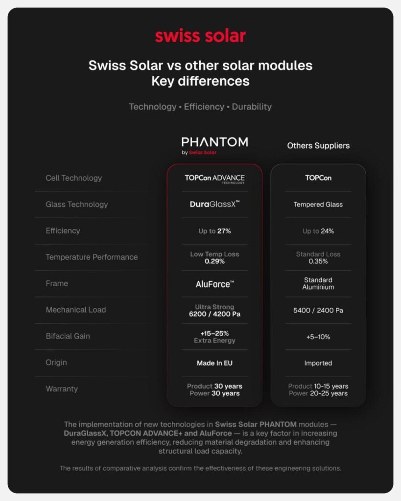 PHANTOM is not an experimental product, but a logical continuation of Swiss Solar’s technological evolution.